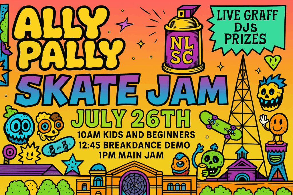 The annual Ally Pally Skate Jam returns on 26 July 2025, once again the Alexandra Palace Creative Learning team have teamed up with North London Skate Club to organise this fun day celebrating the Ally Pally skating community, welcoming faces old and new